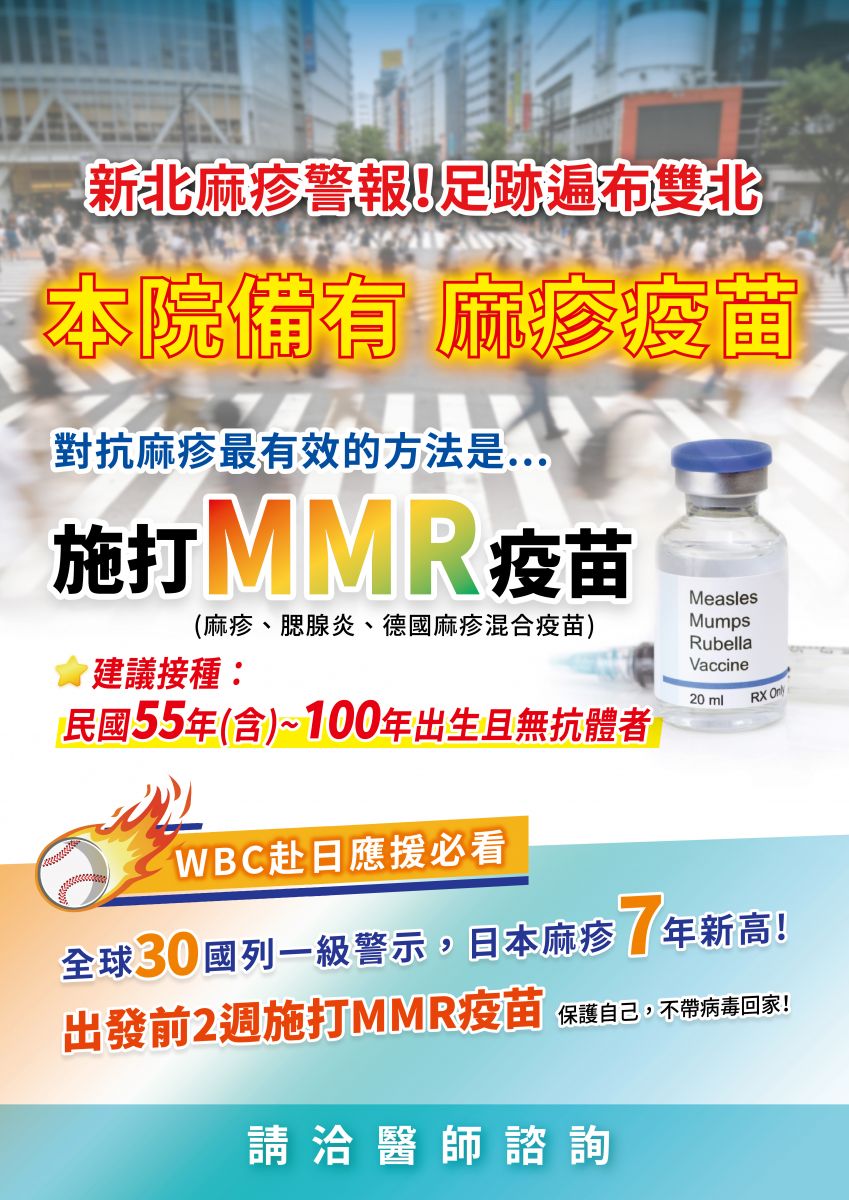 【本診所備有 MMR麻疹疫苗】